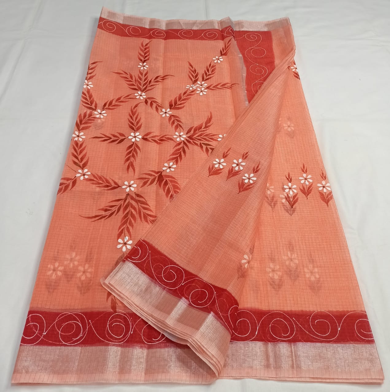 Pure Kota Doriya Hand Painting Saree With Blouse