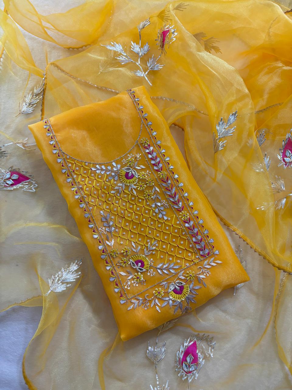 Pure Organza Hand Work Unstitched Suit.