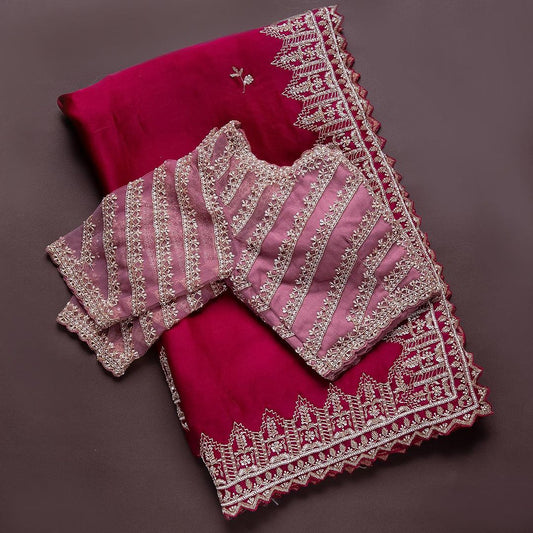 BEAUTIFUL HAND EMBROIDERED ZARDOSI WORK ORGANZA SAREE